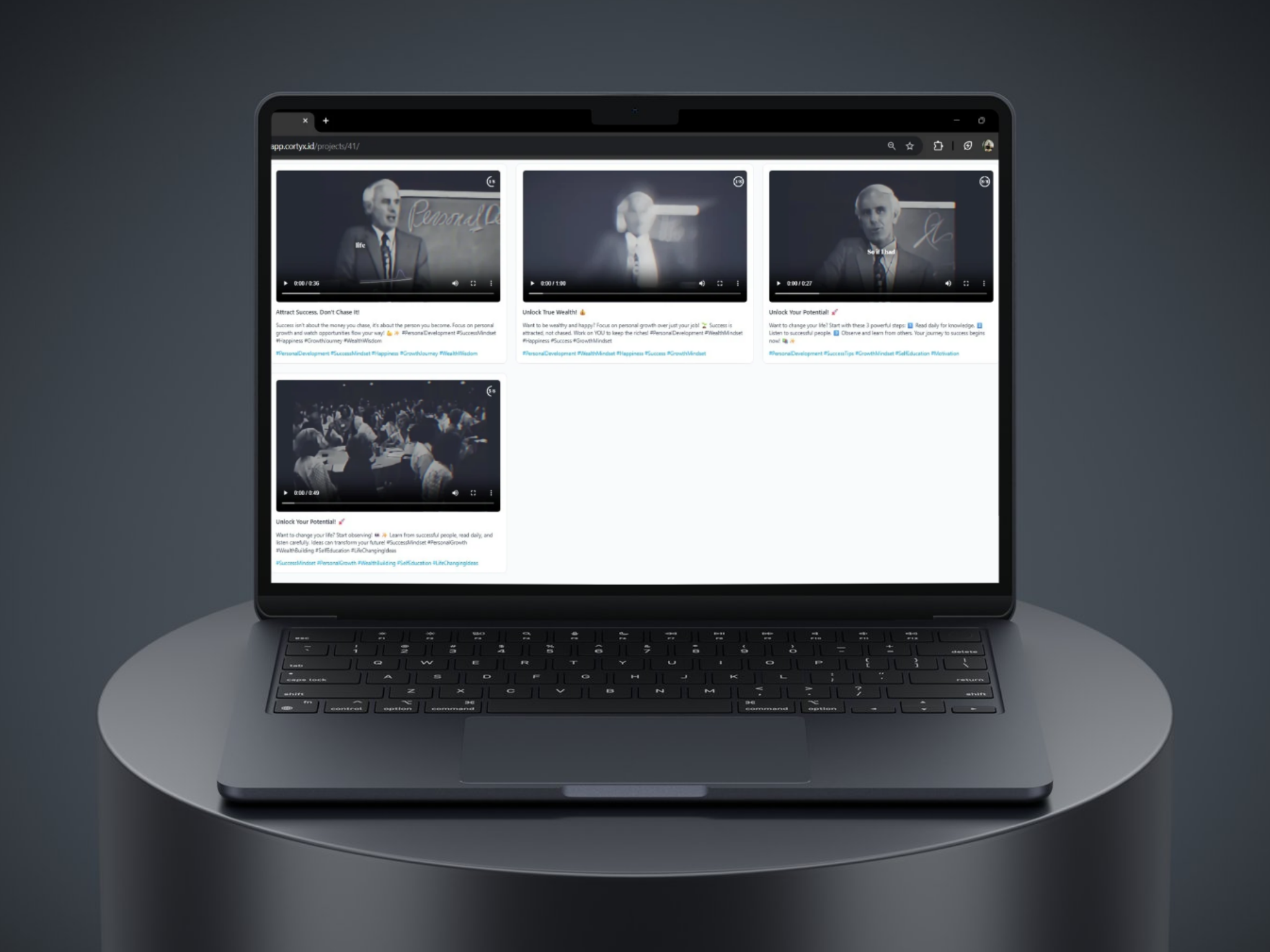 Cortyx membantu highlight bagian terbaik dari sebuah video dalam satu klik lengkap dengan caption dan hashtag.